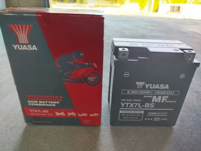 Detalles del productoVendo batería para motocicleta Yuasa YTX7L-BS, nueva sin usar, medidas alto 13 cm, ancho 11 cm y fondo 6,7 cm. Está con su electrolito recien cagada y en perfecto estado. Era para una motocicleta que no ha podido usarse, ni siquiera se ha llegado a instalar la batería en la moto. No negociable. No se hacen envíos. Recoger en mano en Alcalá de Henares o en Madrid zona centro comercial Las Rosas. Un saludo.
