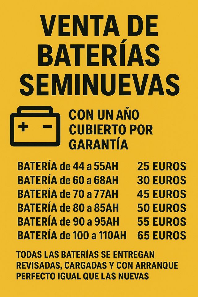 Detalles del productoSe venden baterías de coche seminuevas con un año de garantía.