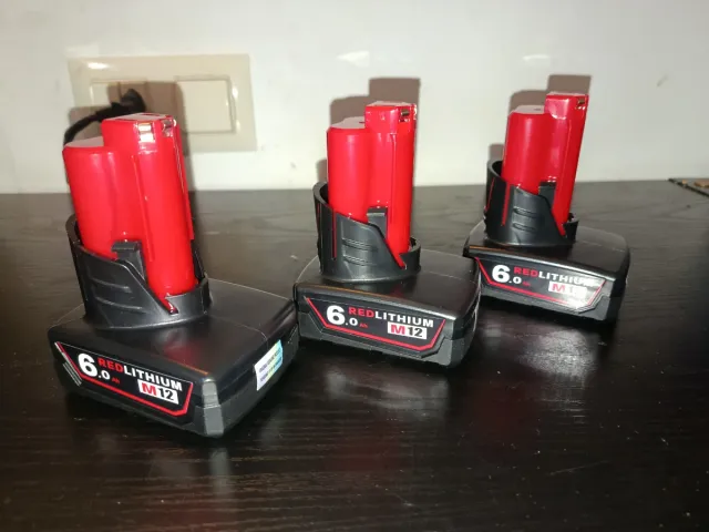 Conjunto de tres baterías Milwaukee M12 REDLITHIUM De 6ah completamente nuevas, en sus cajas, por separado se venden a 60€ cada una.