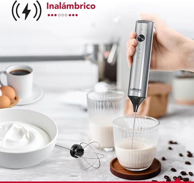 Detalles del producto🔹 Diseño 2-en-1: espumador + batidor con cabezales inox intercambiables.