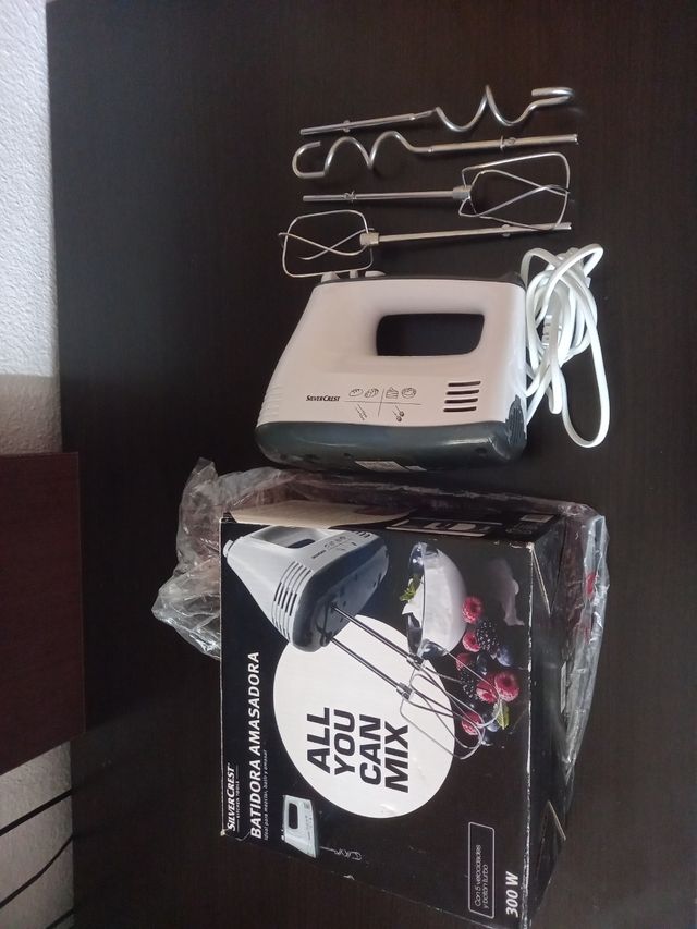 Detalles del productoBatidora asadores SilverCrest. Ideal para batir, mezclar y amasar. 5 velocidades. Botón de turbo. 300W. 2 varillas mezcladoras y 2 varillas amasadoras de acero inoxidable. Vendo por no uso. Medidas del producto