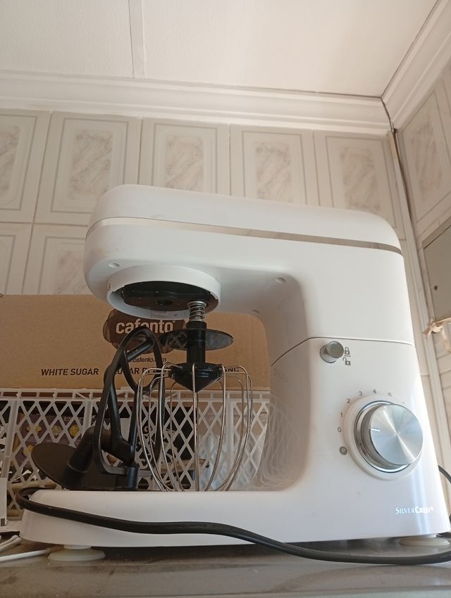 Batidora amasadora de la marca SilverCrest, ideal para repostería. - Color blanco. - Incluye varillas y gancho amasador.