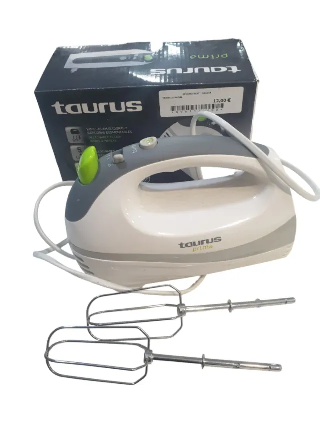 Detalles del productoBatidora amasadora Taurus Prima en color blanco y gris. Incluye varillas.