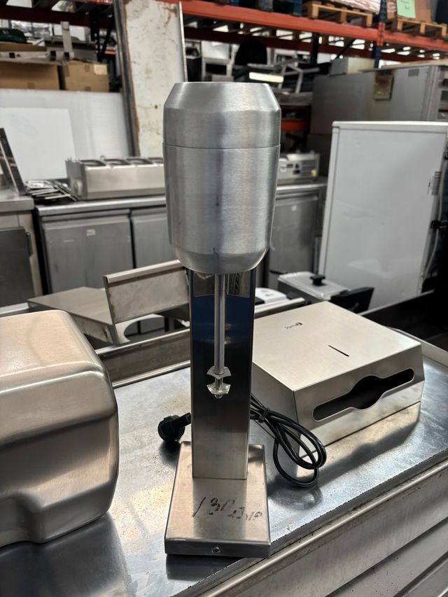 Batidora de helado de acero inoxidable, ideal para hostelería. - Diseño robusto y duradero. - Acabado metálico pulido. - Base estable.