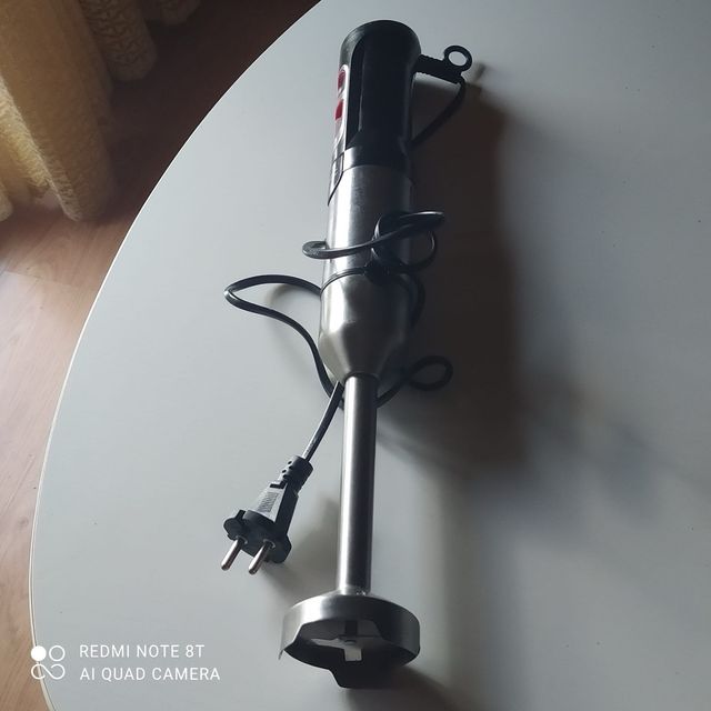 Batidora de mano con diseño moderno y funcional. - Cuerpo de acero inoxidable y plástico. - Cable de alimentación incluido. - Enchufe europeo.