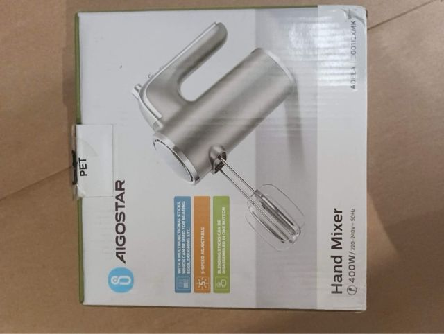Detalles del productoBatidora de mano Aigostar de 400W, ideal para diversas tareas en la cocina.