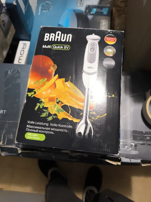 Batidora de mano Braun MQ 5200 en color blanco y gris. Diseñada en Alemania.