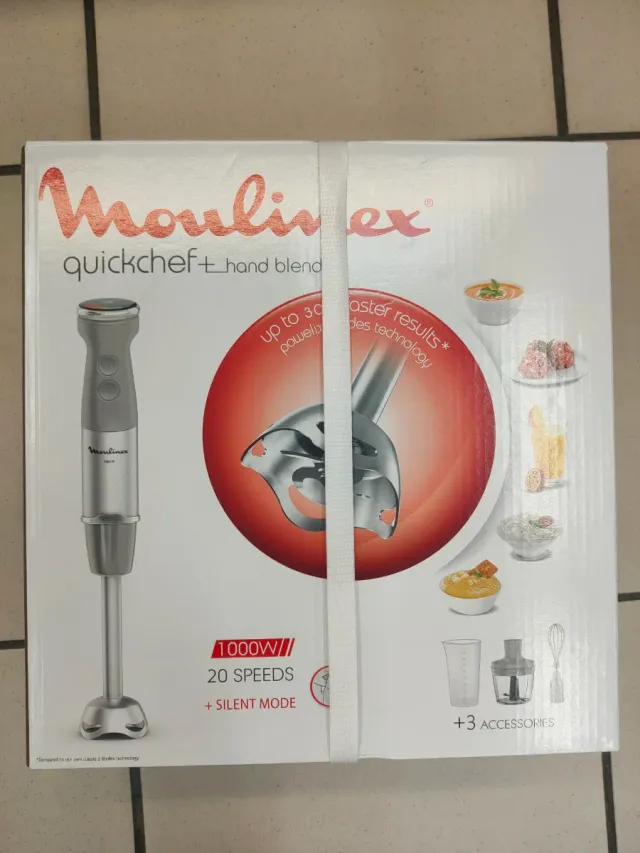 Batidora de mano Moulinex Quickchef+ en color gris y plateado. Potente y versátil para tus preparaciones.