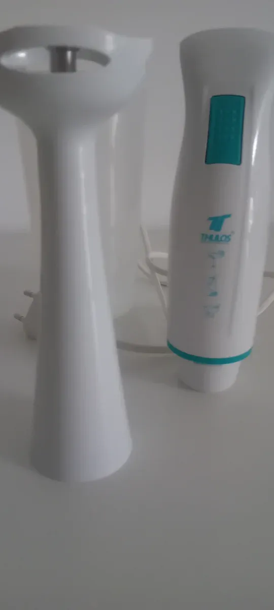 Batidora de mano THULOS en color blanco con detalles en turquesa. Incluye el accesorio de varillas. - Diseño ergonómico. - Botón de encendido y selector de velocidad.