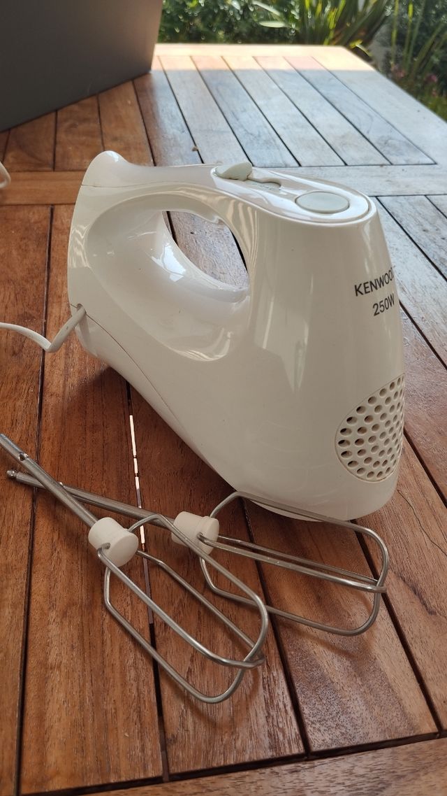 Batidora de varillas Kenwood en muy buen estado. Potencia: 250w Viene con juego de varillas para amasar y para batir. Mango clip. Usada muy pocas veces