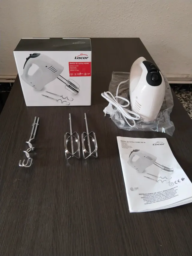 Detalles del productoBatidora de varillas de la marca Lacor, con 300W de potencia y 5 velocidades.