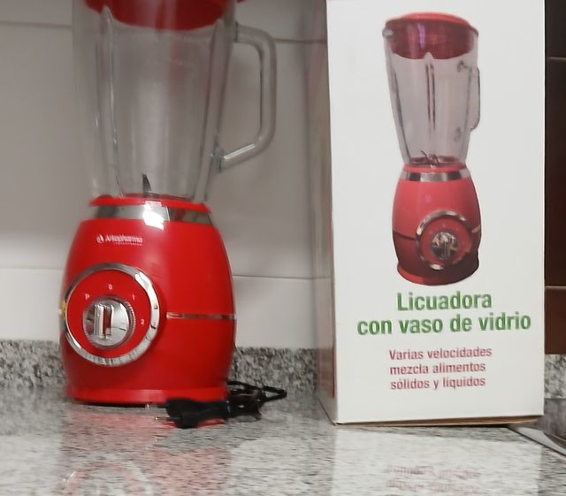 Detalles del productoLicuadora de vaso de cristal en color rojo, ideal para preparar tus batidos y mezclas. Muy potente. Diseño vintage.
