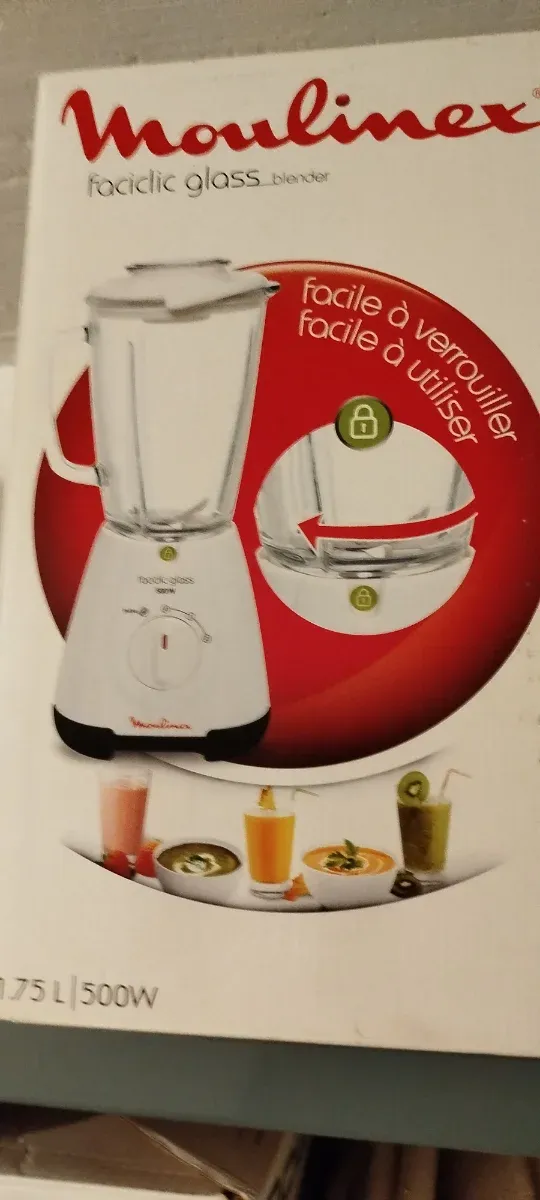 Batidora de vaso Moulinex Faciclic Glass con jarra de cristal. - Capacidad de 1.75 L. - Potencia de 500W. - Diseño moderno y funcional.