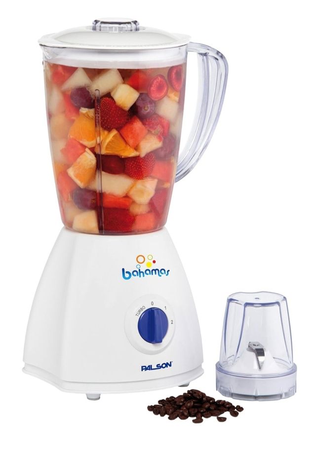 Detalles del productoBatidora Palson Bahamas en color blanco, con jarra transparente y molinillo incluido.