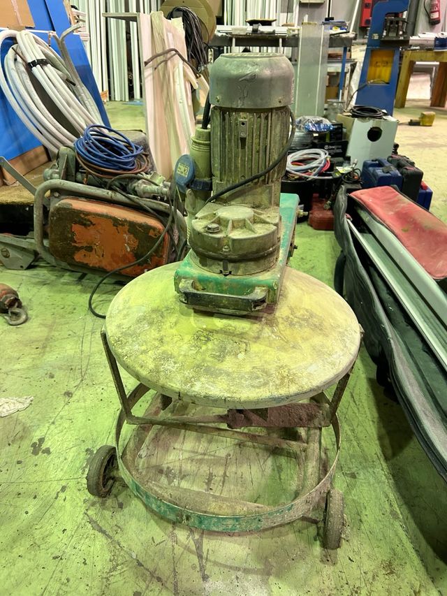 Batidora para capazo, ideal para mezclar materiales. - Motor eléctrico. - Estructura metálica con ruedas. - Plato de mezcla. - Color verde.