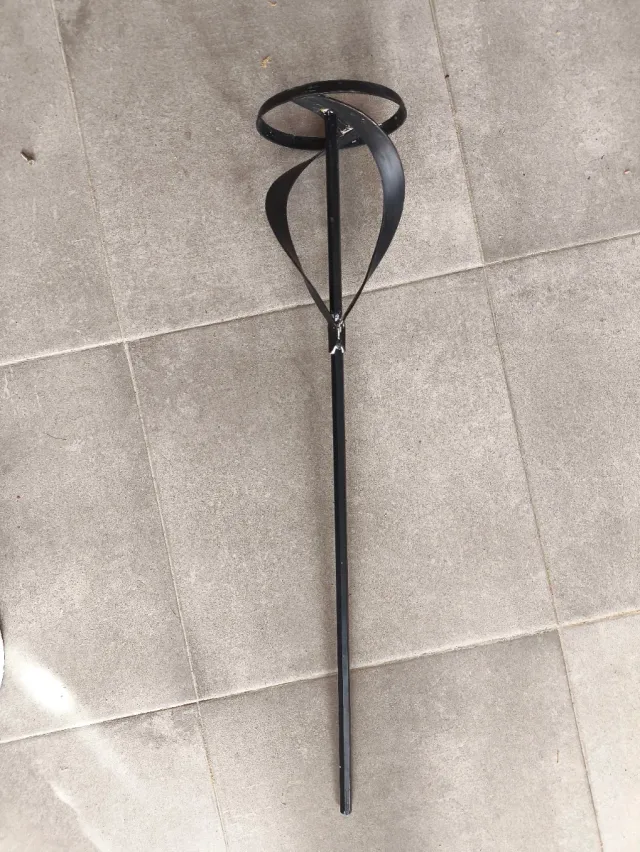 Accesorio para taladro diseñado para mezclar materiales. - Fabricado en metal negro. - Forma de espiral para una mezcla eficiente.