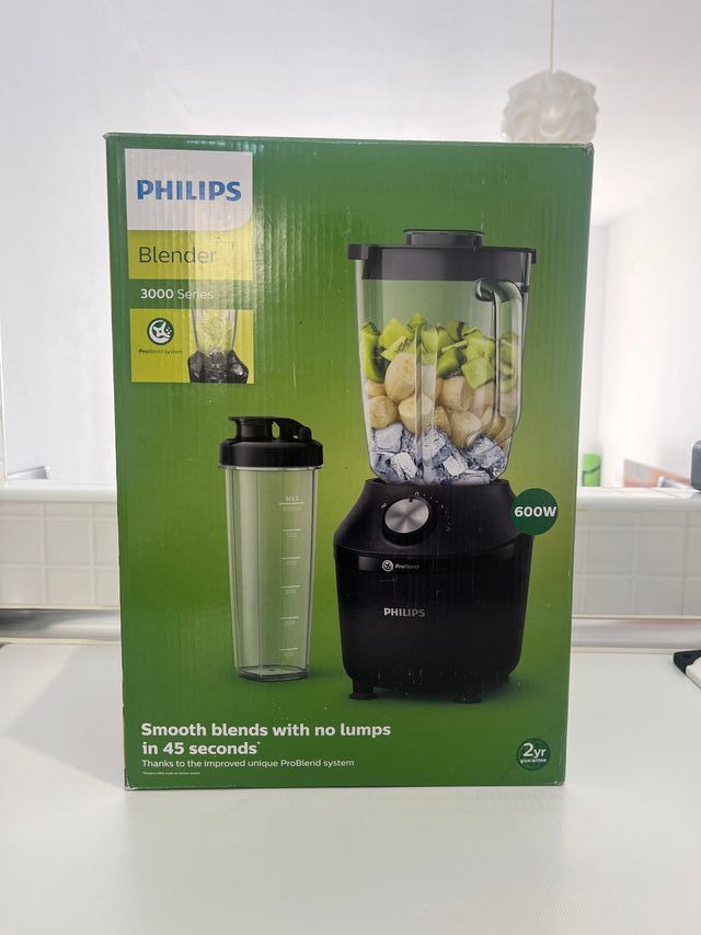 Batidora Philips Serie 3000 con sistema ProBlend. - Potencia de 600W. - Diseñada para mezclas suaves en 45 segundos. - Incluye vaso mezclador.