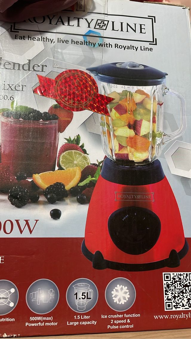 Detalles del productoBatidora de vaso Royalty Line en color rojo, con una capacidad de 1.5 litros.