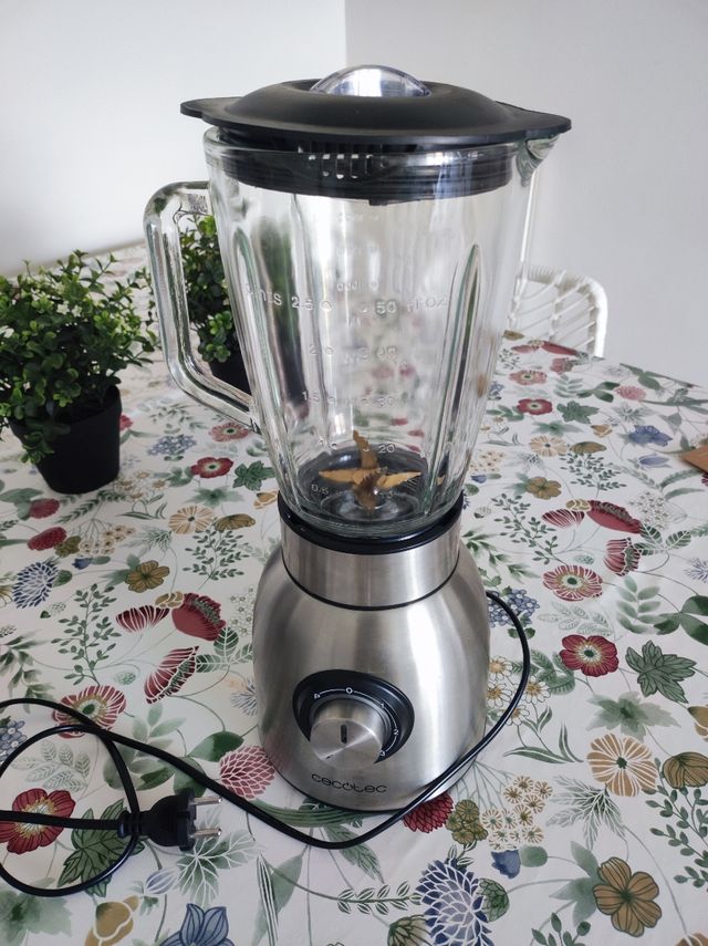 Batidora de vaso Cecotec con jarra de cristal. - Jarra de cristal. - Diseño moderno en acero inoxidable. Como nueva, casi no se ha usado.
