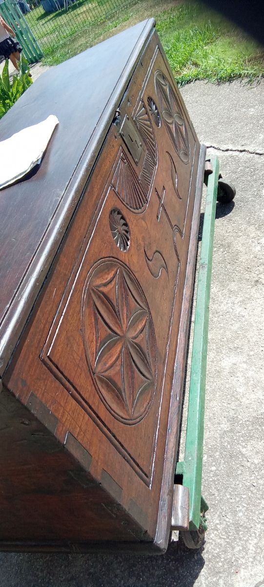 Detalles del productoPrecioso baúl antiguo de madera de castaño. Se encuentra en buen estado de conservación, considerando su antigüedad.