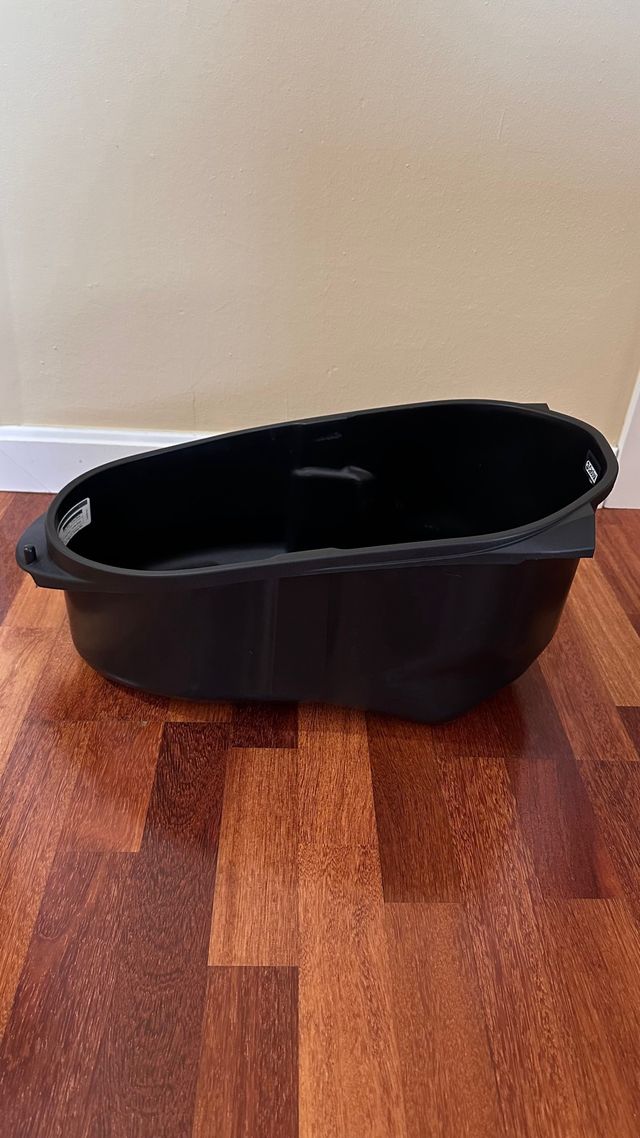 Baúl original para asiento de Vespa 300 GTS. Pieza de plástico negro. - Diseño bajo asiento. - Color negro.
