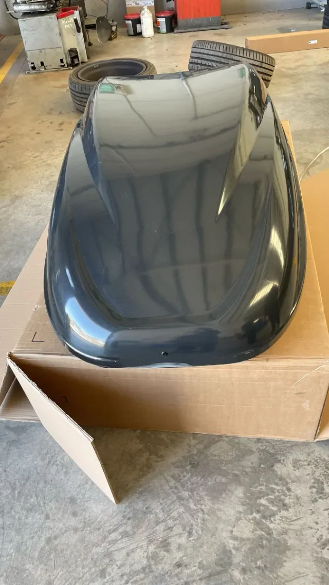 Baúl de techo Kia, completamente nuevo y sin usar. - Color negro brillante. - Diseño aerodinámico. - Cierre de seguridad.