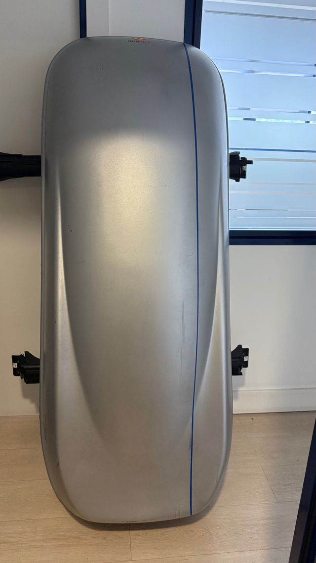 Detalles del productoVendo baúl portaequipajes para coche, en color gris plata. Está en buen estado, con alguna pequeña marca superficial.