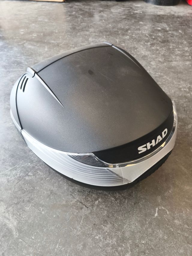 Detalles del productoMe gustaría vender este baúl SHAD SH 33. Se encuentra en buen estado, como se puede apreciar en las fotos, únicamente un raspazo. Tiene dos agujeros con la posibilidad de añadirle respaldo totalmente nuevo (opcional)