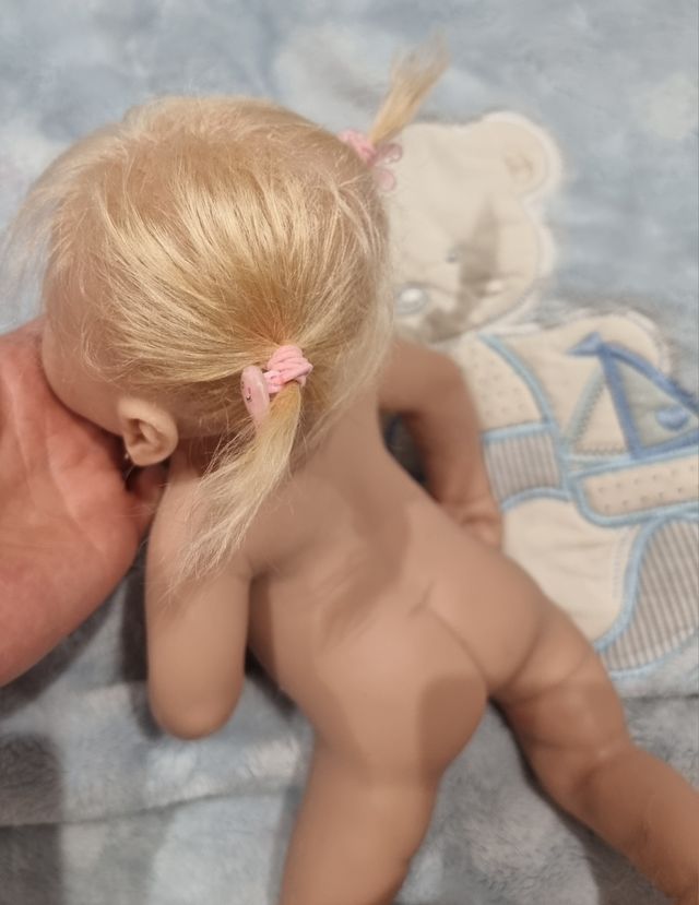 Todo el cuerpo puede moverse, apretarse, rojeces, arrugas, uñas... Cabello injertado, pendientes, boca abierta y reforzada, utiliza chupetede bebe real de farmacia...