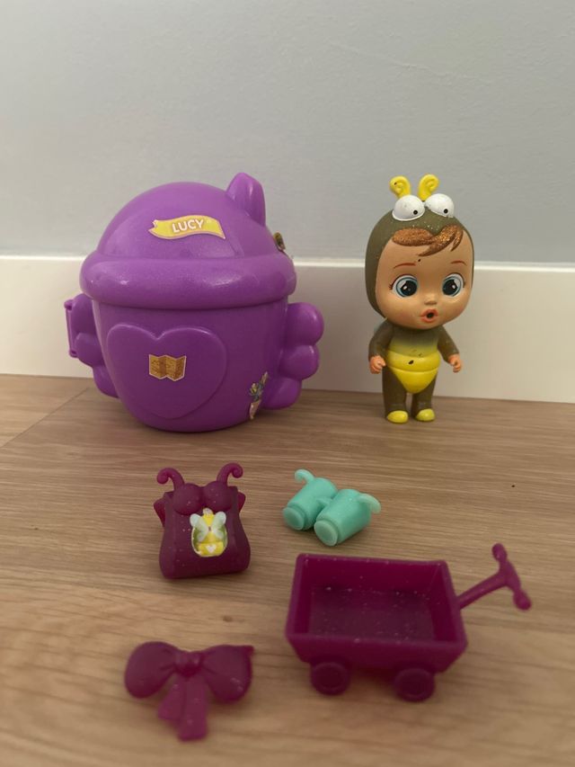 Detalles del productoUn bebe lloron oruga tamaño pequeño incluye casita y algunos accesorios:mochila,prismaticos,carre- tilla y lazo. precio original 17,79 mide aproximadamente 13 centimetros