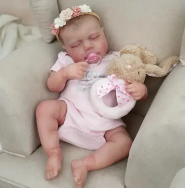 Detalles del productoMuñeca Reborn con cuerpo de tela y extremidades de vinilo suave, vestida de rosa con su diadema de flores y su oso. Es muy realista ya que está pintado a mano en 3D hasta el más mínimo detalle; viene con sus rojeces, sus venitas y sus uñitas. Tamaño 44cms aprox. y pesa alrededor 1220gr. Tiene pestañas. Tanto para coleccionistas como para regalo. Puedes reservarlo con 18€!!!!