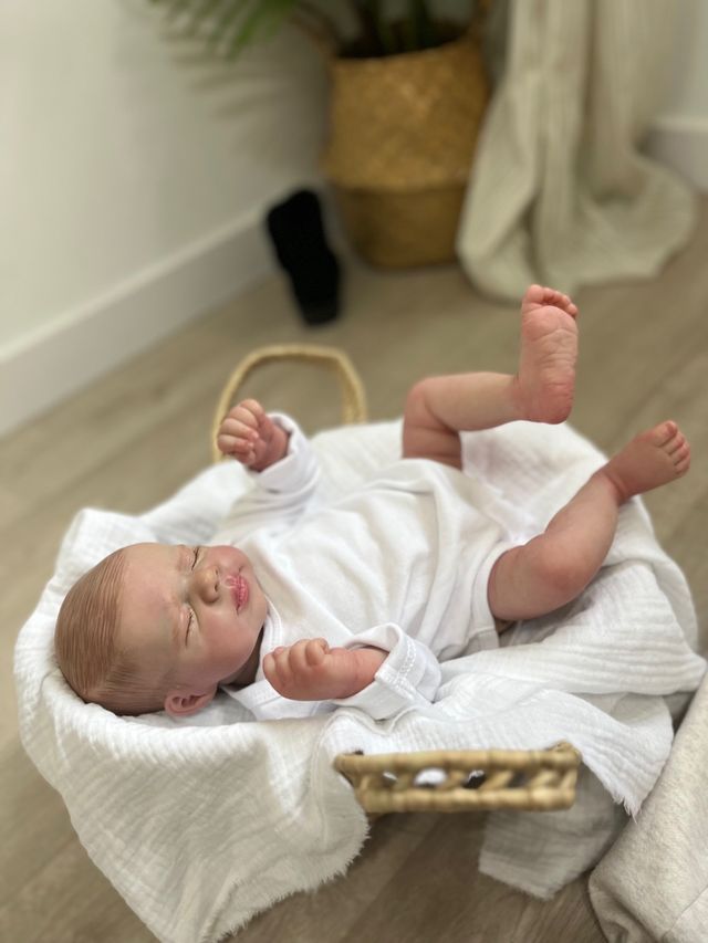 bebé reborn con aspecto muy realista. - Cuerpo de tela extremidades de vinilo - Pelo pintado - totalmente pintado artenasalmente Peso 2,300 46 cm