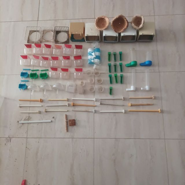 Bebederos, comederos, palos y nidos 70 piezas