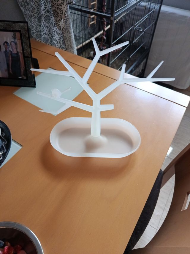 Bebedero para pájaros de plástico blanco. - Diseño de árbol con base ovalada. - Ideal para colocar en interiores o exteriores.