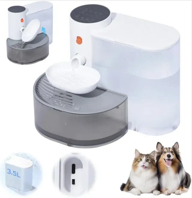Auveach Water Fountain for Cats Dogs 3.5L, Wireless with 3 Levels of Time Interval and Volume, Water Dispenser for Cats Automatic Drainage, No Filters, Ultra Quiet