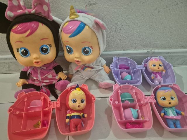 Detalles del productoSet de Bebés Llorones con temática de unicornio y Minnie Mouse. Incluye dos muñecos y sus accesorios.