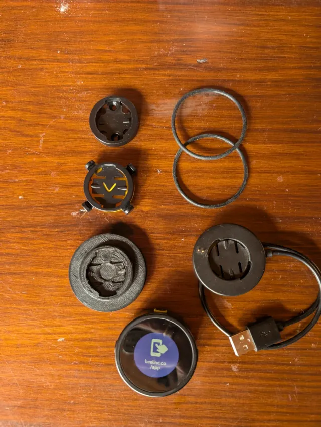 Navegador GPS Beeline Moto con accesorios. - Soporte para manillar. - Anillas de goma. - Cable de carga USB.