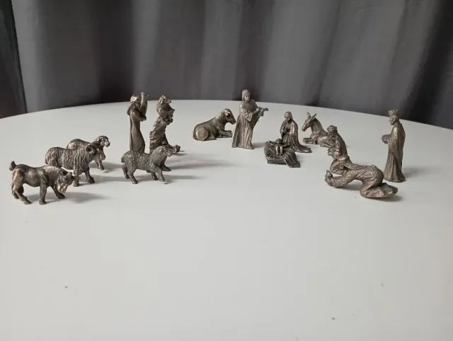 Conjunto completo de figuras para el Belén, elaboradas en metal. - Figuras detalladas de personajes y animales. - Material: Metal.