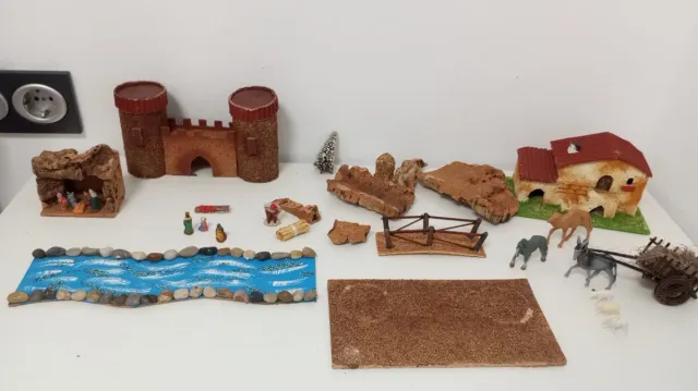 Detalles del productoConjunto de figuras y elementos para montar un belén de Navidad.