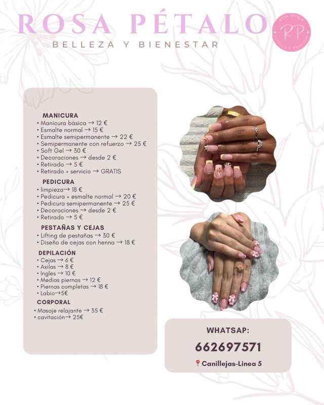 • Manicura (básica, esmalte normal, semipermanente, soft gel, decoraciones)