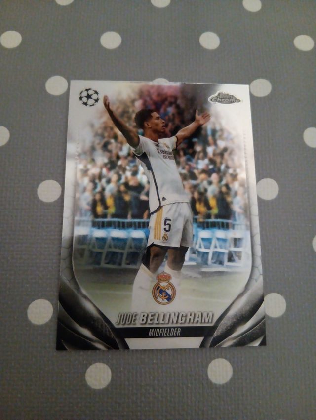 Detalles del productoVendo carta cromo de Jude Bellingham, centrocampista del Real Madrid. La carta está en perfecto estado.