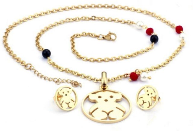 BelloConjunto Joyas Oso Dorado Collar y Pendientes