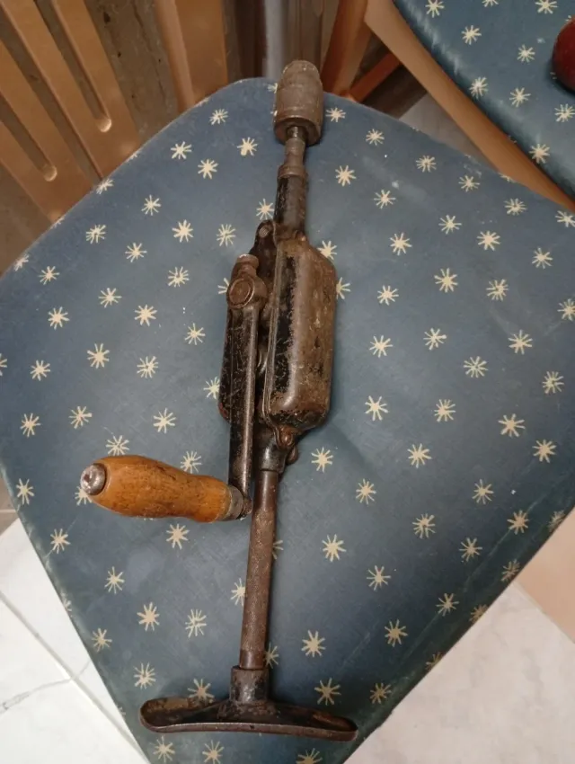 Detalles del productoBerbiquí o taladro manual de estilo antiguo, perfecto para trabajos de bricolaje o como pieza de colección.