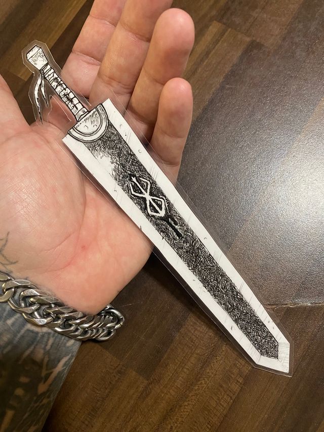 Detalles del productoHe dibujado a mano este marcapaginas de berserk, el diseño se una idea propia mia y lo he plastificado y recortado a mano además el mango de la espada se deja ver por la parte superior del cómic hecho con mimo. puedo enviarlo por carta tambien con envio de 1,80 euros.