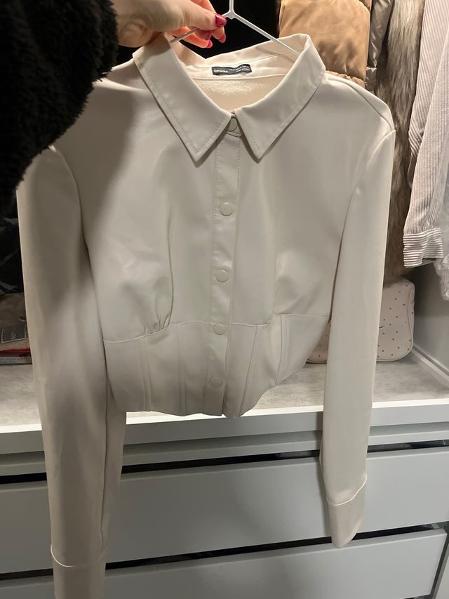 Bershka ChaquetaCrop Cuero Sintético Beige Talla M