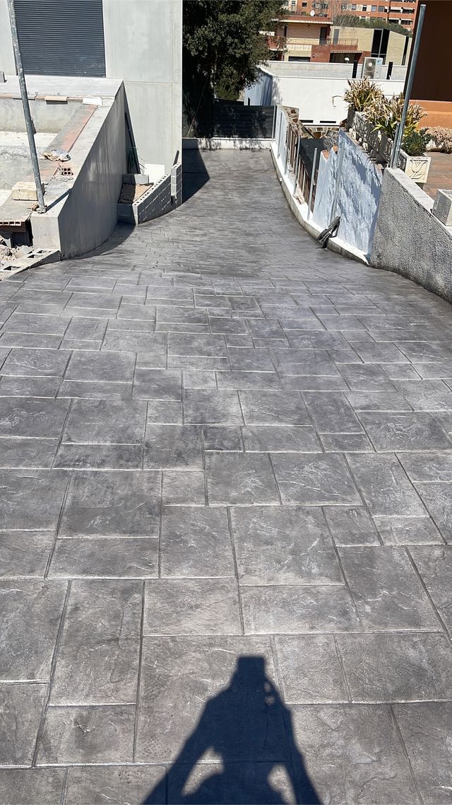 trabajo de hormigón impreso en sabadell Barcelona Pavimento pulido y fachadas de mono-capa, rehabilitación y revestimientos de fachadas,muros,vallas en mortero decorativo,zócalos exteriores con acabado impermeable y varios dibujos,recubrimiento decorativo para acabados lisos o texturizados, sobre muros y superficies en exteriores y interiores.Pides presupuesto sin compromiso. No dudes gracias
