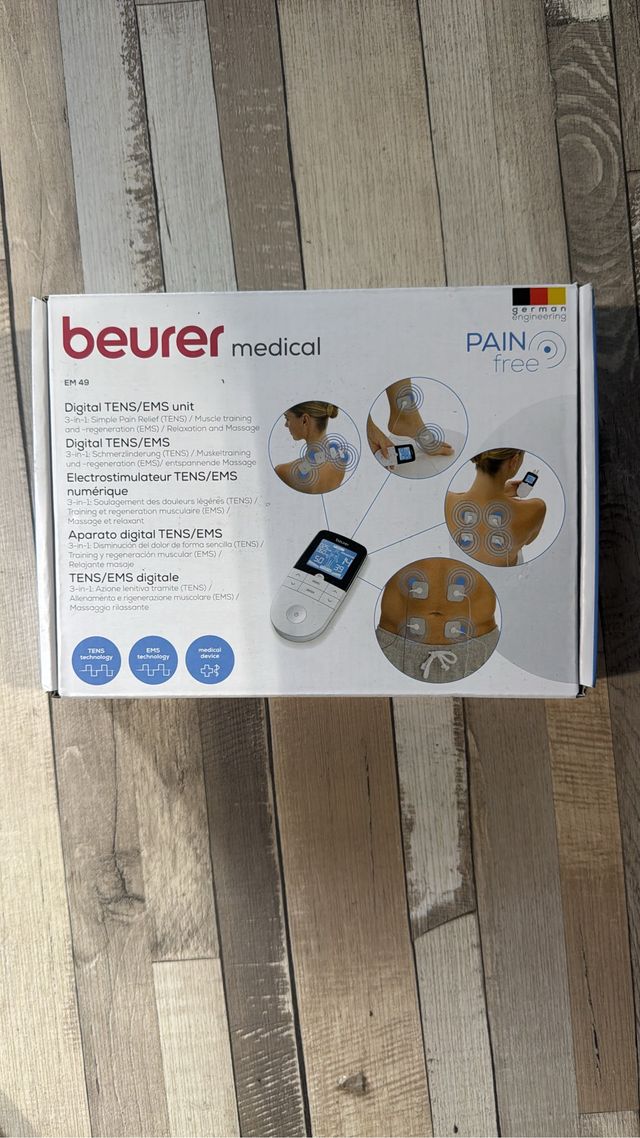 Detalles del productoUnidad digital Beurer EM 49 para alivio del dolor y entrenamiento muscular.