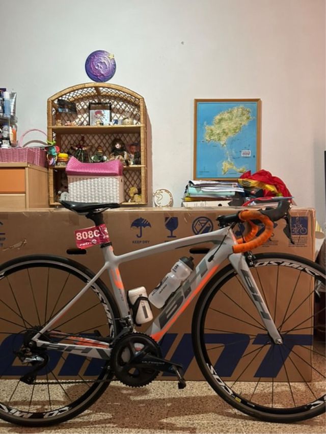 Detalles del productoBicicleta de carretera en perfecto estado. Cuadro de carbono aerodinámico, grupo Shimano Ultegra 11v, ruedas Mavic Cosmic y medidor de potencia Stages incluido. Talla XS, ideal para personas de 1,55–1,65 m.