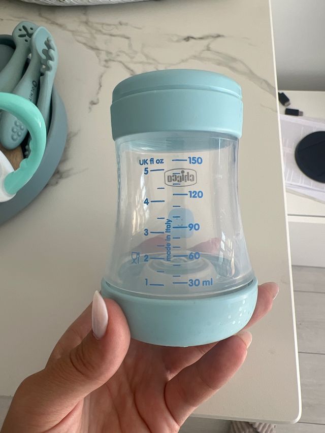 Biberón Chicco de 150 ml con medidas en ml y oz. Anticolicos - Capacidad: 150 ml / 5 fl oz. - Fabricado en Italia. - Diseño ergonómico