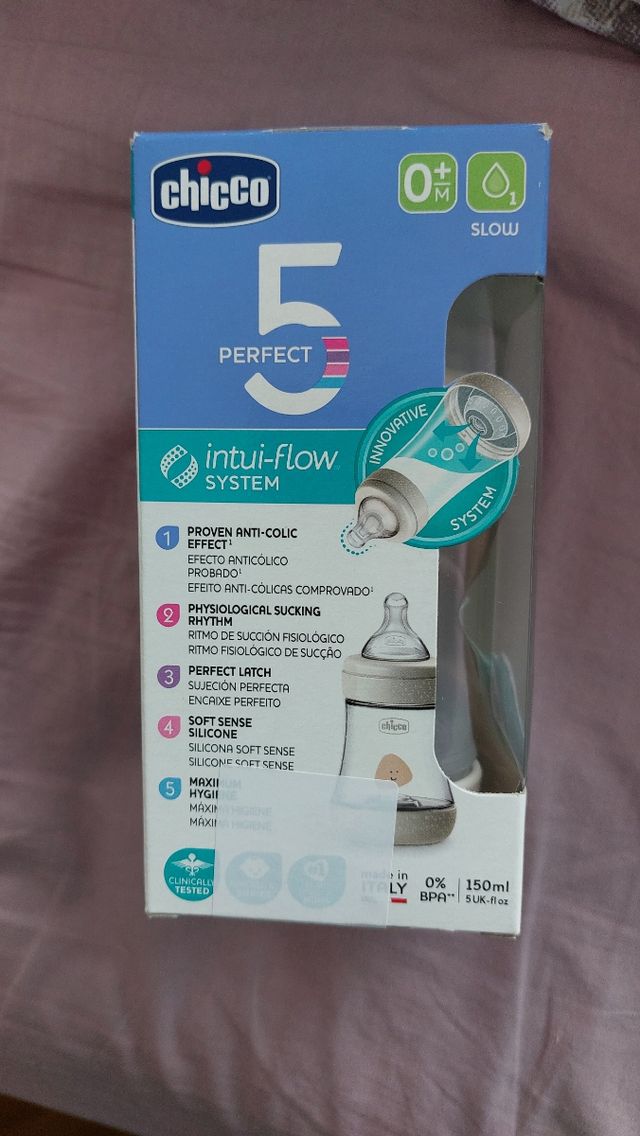 Biberón Chicco perfect 5, 0+ meses, nuevo a estrenar en su caja y nunca abierto. Color beige. Anticólico. Flujo lento.